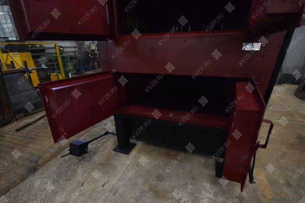 Также она оборудуется двумя топочными дверцами, расположенными одна над другой, двумя зольными коробами и специальной дверцей для уборки золы. Процесс горения происходит на колосниковой решетке, зола проваливается в короб через специальные отверстия. Эффективное сгорание твердого топлива обеспечивается не только большими размерами топки, но и наличием поворотной камеры и газоплотных панелей.